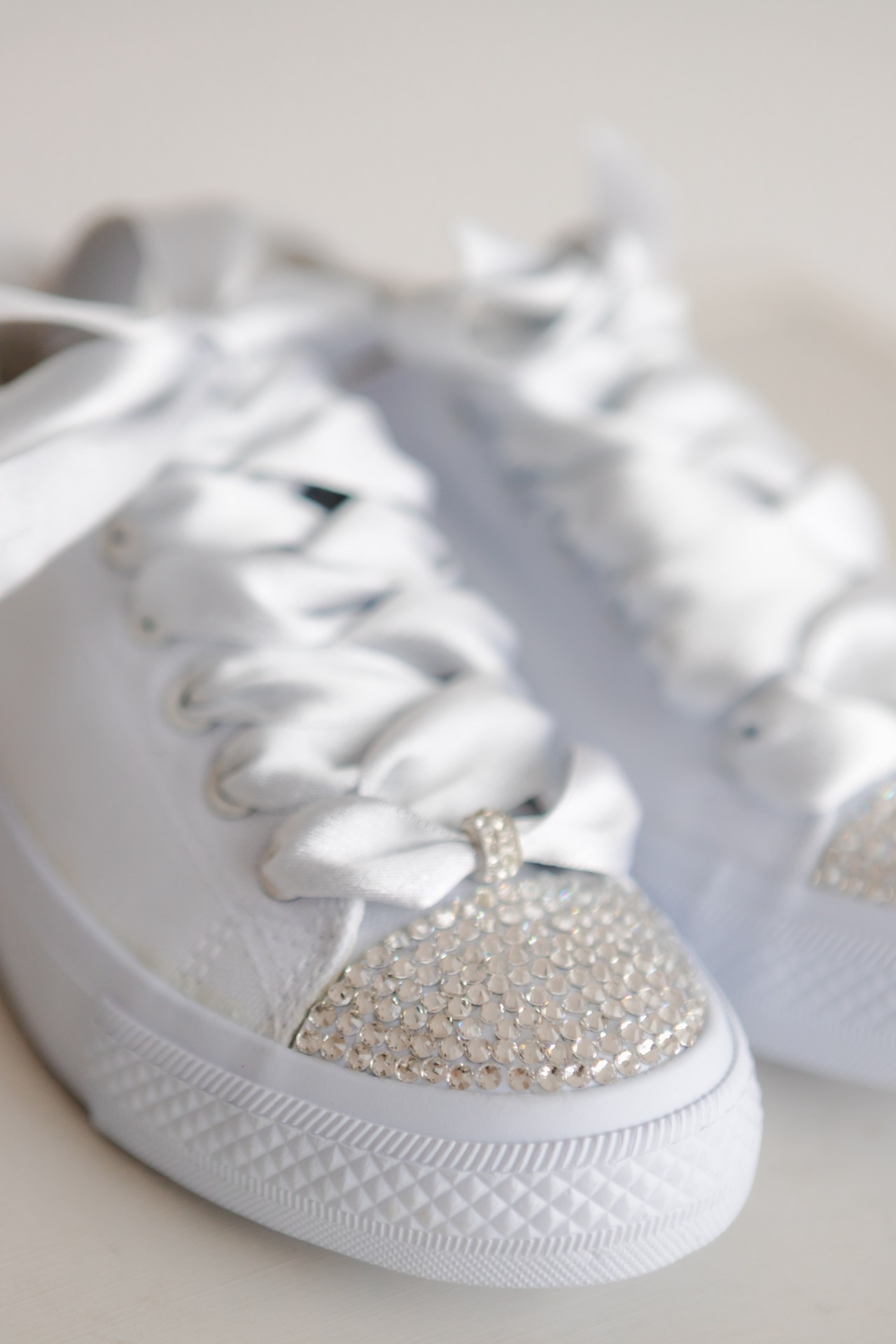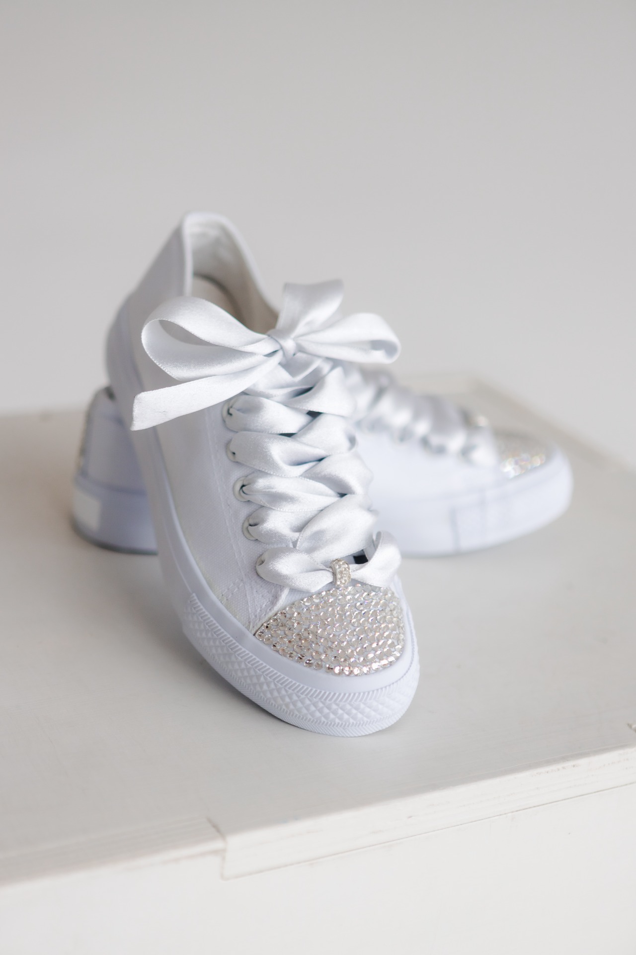 Model "Kryštálová rosa" je pre milovníčky čistého štrasu. Špička tenisky je husto vysadená brúsenými kamienkami, ktoré odrážajú svetlo do všetkých strán. Pôsobia ako posypané diamantovým prachom.