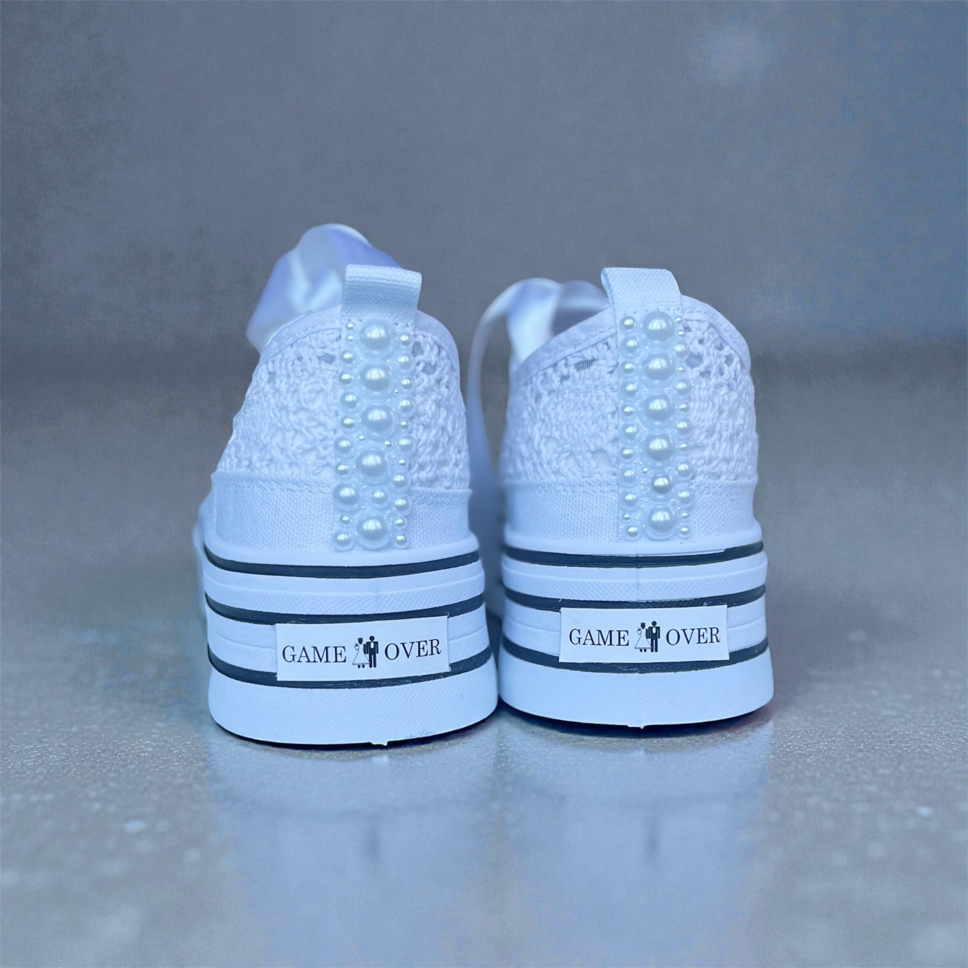 V čom sú jedinečné? Spájajú v sebe tri svety – luxus čipky, eleganciu periel a moderný strih platformy. Sú to tenisky pre nevestu, ktorá chce byť vysoká, elegantná, no zároveň sa chce cítiť slobodne pri každom tanci.